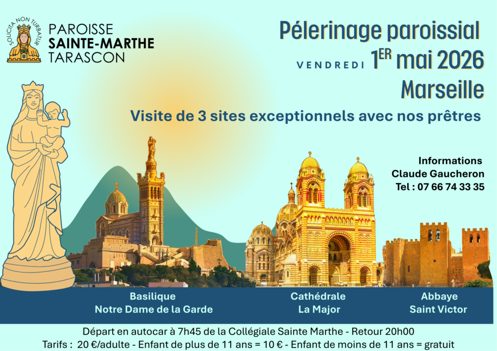 Le Père Michel Savalli nous propose de commencer le mois de Marie par un pèlerinage à Marseille le vendredi 1er mai : visite de Notre-Dame de la Garde, l’Abbaye de Saint Victor et la cathédrale La Major.